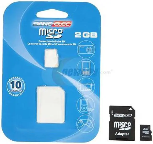 DANE-ELEC 2GB MicroSD Flash Card w/ SD Adapter Model DA-2IN1-02G-R
