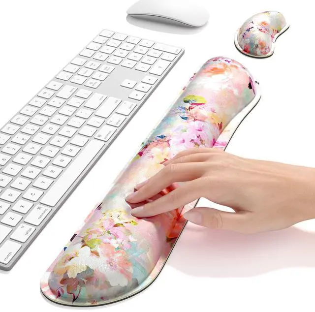 • Memory Foam Wrist Support: Memory foam inside the keyboard and mouse wrist rest keeps your wrists lifted and supported in a comfortable way.get full support to distribute pressure and put angled up wrists naturally
