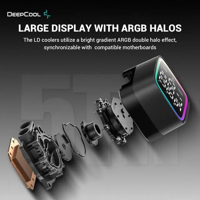 The large multiple data points display of the LD series is unmistakable, but the LD coolers also utilize a bright gradient ARGB double halo effect that encapsulates the premium aesthetics of the LD pump design: beautifully bright as well as being functional. The ARGB of the entire cooler can be easily synced to ARGB headers on compatible motherboards.