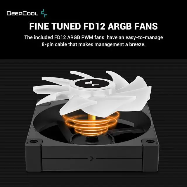 Optimized FD12 ARGB PWM fans are included with the LD360 and have been fine-tuned to provide excellent cooling performance with a long-life Hydro Bearing. The LD360 includes three of these specialized FD12 fans, which have an easy-to-manage 8-pin cable that can be chained to each of the FD fans.
