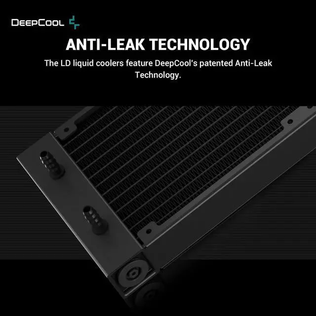 The LD liquid coolers feature DeepCool's patented Anti-Leak Technology. The internal valve regulates pressure and will purge it when internal pressure exceeds atmospheric pressure; this leads to a longer useful life while reducing the possibility of leaks.