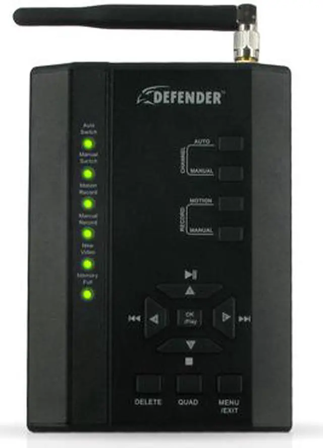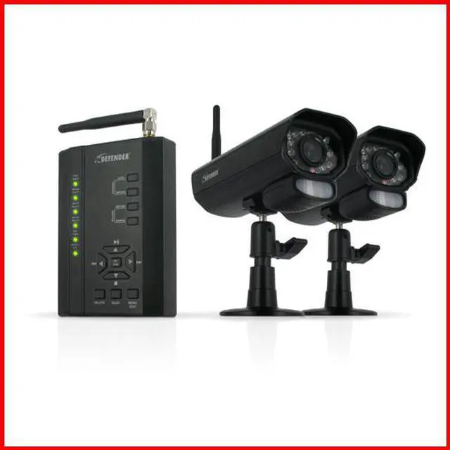 Defender's PHOENIX 301 system can be used to monitor and record video and audio in any indoor or outdoor space at any time of the day. This wireless plug and play system allows for easy set up in a matter of minutes and the included 2GB SD card can record up to 350 minutes of continuous audio and video footage. The wireless, weather resistant cameras included with this system have 18 infrared LEDs that allow you to see up to 40ft away in the dark. This system includes a compact receiver that easily connects to any television in your home or business using the included A/V cable. Ideal for monitoring entrances, backyards, valuables or employees, this PHOENIX 301 system can be used in any situation you need.