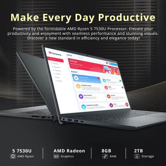 The Dell Inspiron 15.6 '' FHD Touchscreen Laptop delivers smooth and efficient performance with the AMD Ryzen 5 7530U Processor, handling multitasking and everyday tasks effortlessly. AMD Radeon Graphics ensures vivid visuals and fluid rendering on its vibrant FHD touchscreen, making streaming, content creation, and productivity tasks more engaging and visually rich.