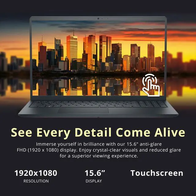 15.6" FHD Anti-Glare Touchscreen Display: Offers clear, vibrant visuals with reduced glare for comfortable viewing.