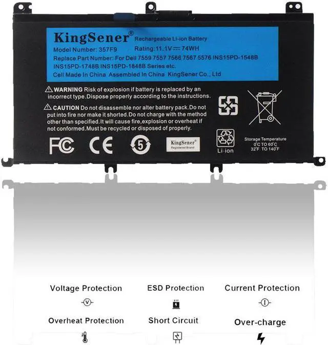 KingSener 11.1V 74WH 357F9 Laptop Battery Notebook Batteries For Dell Inspiron 15- 7000 7559 7557 7566 7567 5576 INS15PD-1548B INS15PD-1748B INS15PD-1848B