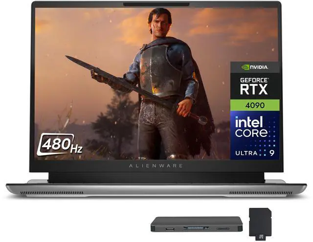 Dell Alienware x16 R2 16" FHD 480Hz Gaming Laptop, Intel Ultra 9-185H, 32GB RAM, 4TB SSD, NVIDIA GeForce RTX 4090, Backlit Keyboard, Windows 11 Pro, Lunar Silver, 1TB Docking Station Set
