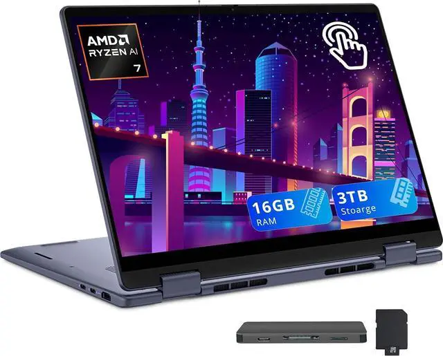 The Dell 14" 2K 2-in-1 Touchscreen Laptop offers strong performance with AMD Ryzen AI 7 350, smooth AMD Radeon graphics, a versatile touchscreen design, a backlit keyboard, and a fingerprint reader for secure, easy access.
