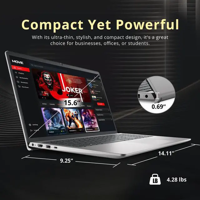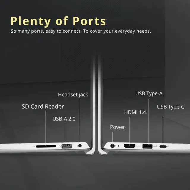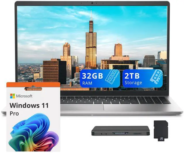 Windows 11 Pro: 14.11" x 9.25" x 0.69", 4.28 lbs. Ports: 1x USB-C, 2x USB-A, 1x HDMI 1.4, 1x Headset jack, 1x SD Card Reader. Wi-Fi 6 + Bluetooth. Bonus Docking Station Set: 1x 7-in-1 Docking Station w/ 1TB Storage, 1x 32GB MicroSD Card w/ Adapter, 1x Type-C Data Cable, 1x 3-in-1 Charging Cable, 1x Suede Cleaning Cloth.