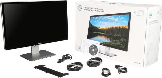 | Package Contents | Monitor with stand Cable cover Power cable 2 x DP-DP Cable 2 x mDP -DP cable 1 x mDP -mDP cable USB 3.0 upstream cable (enables the USB port on the monitor) Drivers and documentation media Quick setup guide Safety Information Factory Calibration Report |