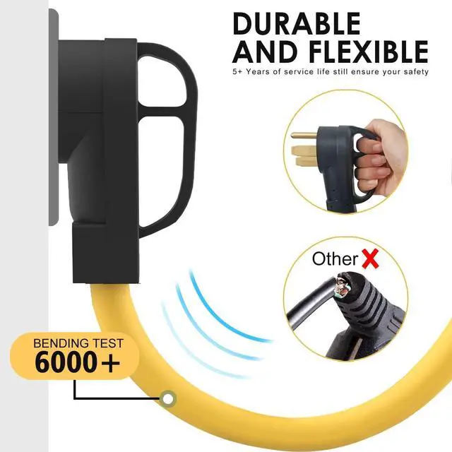 The NEMA 14-50P end of this adapter cord is equipped with an ergonomic grip handle, offering safety and convenience while plug and unplug