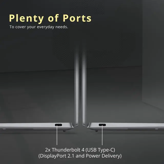 Windows 11 Pro: 11.62" x 7.84" x 0.6", 2.7 lbs. Ports: 2 x Thunderbolt 4 (USB Type-C) (DisplayPort 2.1 and Power Delivery), Wi-Fi 7 + Bluetooth 5.4. Bonus Docking Station Set: 1x 7-in-1 Docking Station w/ 1TB Storage, 1x 32GB MicroSD Card w/ Adapter, 1x Type-C Data Cable, 1x 3-in-1 Charging Cable, 1x Suede Cleaning Cloth.