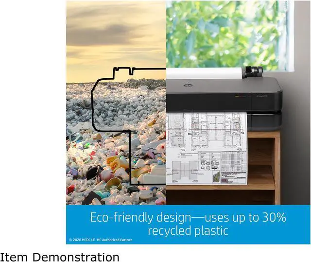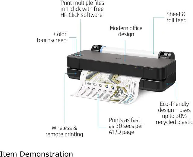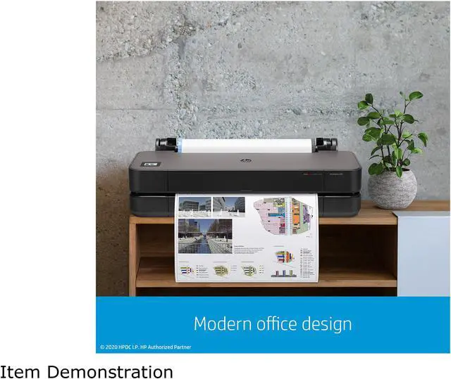 HP DesignJet T250 24-in Printer, printhead, introductory ink cartridges, spindle, quick reference guide, setup poster, power cord
