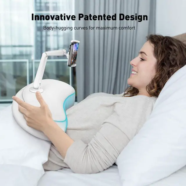 The cushioned, crescent-shaped pillow fits snugly against your body, ensuring maximum comfort during extended use. Whether youre watching your favorite videos, reading e-books, joining Zoom meetings, or gaming, this pillow holder supports your device in a way that eliminates the strain from holding your phone.