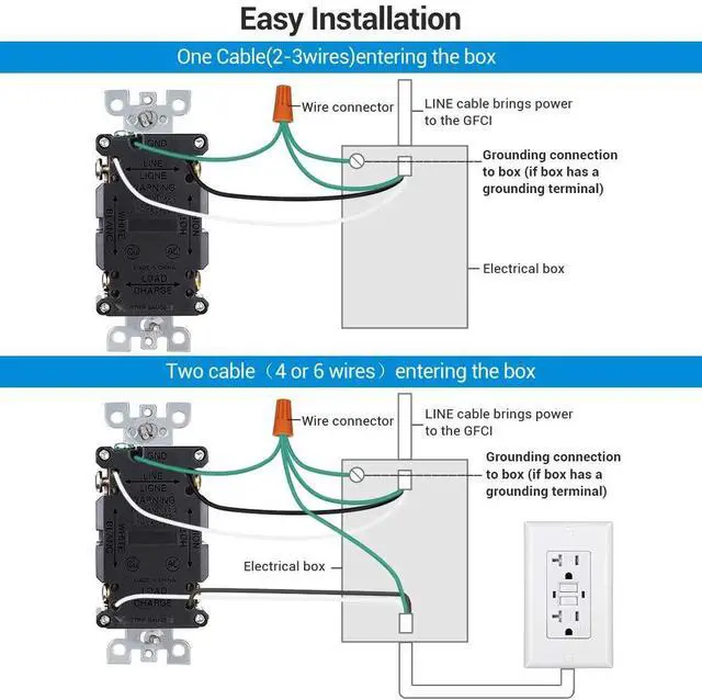 - 2 x GFCI Duplex Outlet Receptacle (Wiring Type: Side Wire or Back Wire)