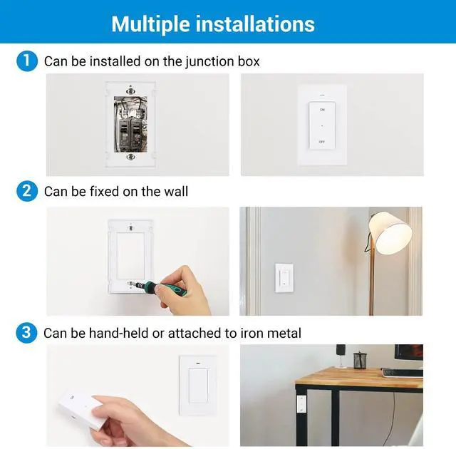 The magnetic wall switch can be mounted anywhere and can be taken off and used as a portable handheld remote. Perfect for the elderly, pregnant woman and those with limited mobility or back pain; make your life convenient, safer, and energy efficient.