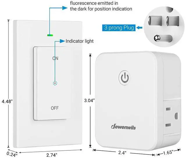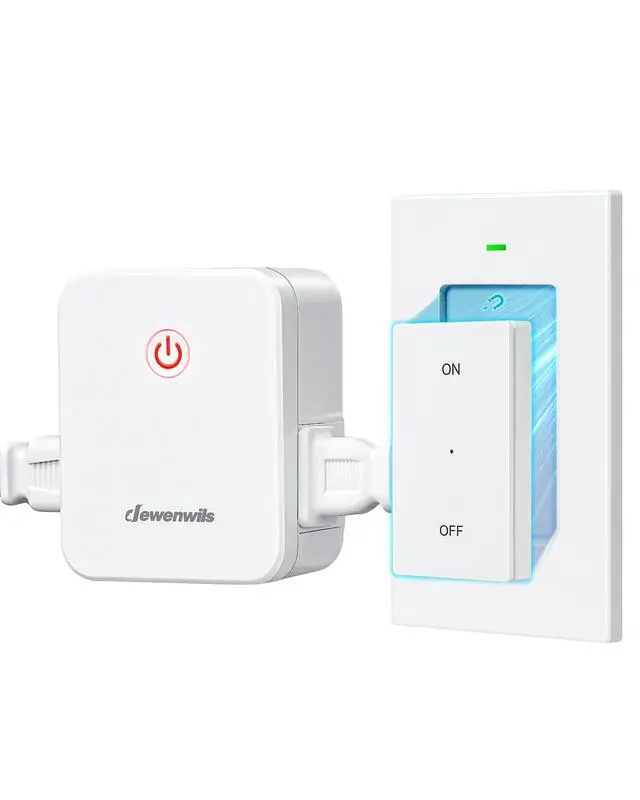 Dewenwils Wall Mounted Switch and Plug-In Receiver Indoor Wireless Remote Controlled Outlet Plug Light Switch Set
