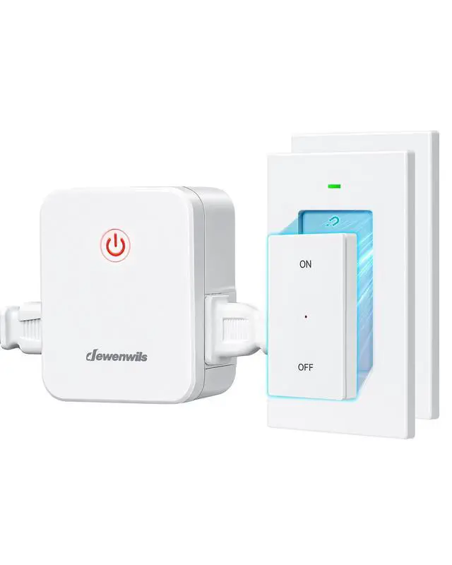 Dewenwils New Design Wall Mounted Switch and Plug-In Receiver Indoor Wireless Remote Light Switch with 2 Side Outlets