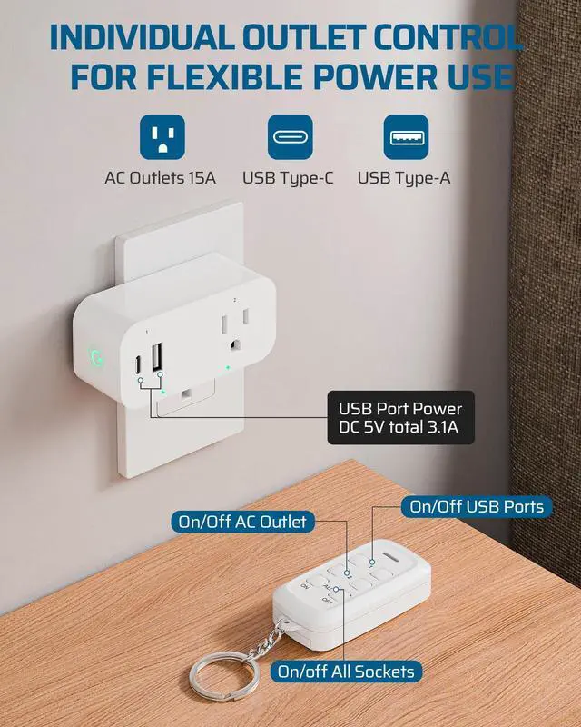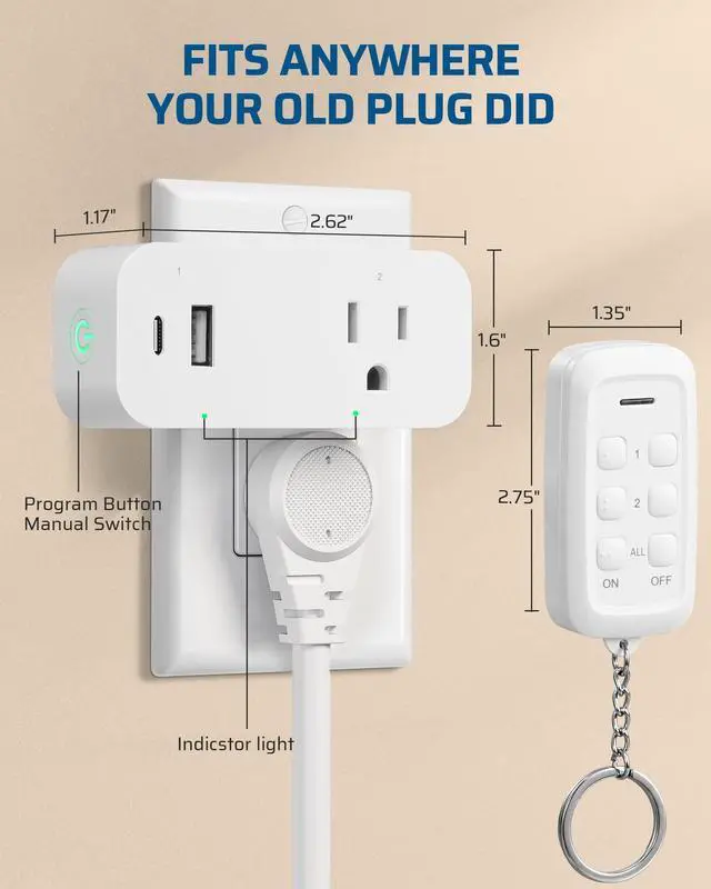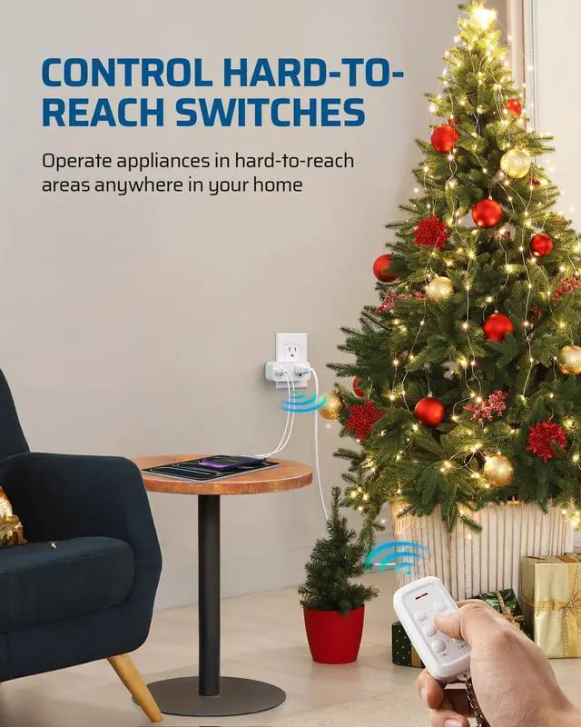 ![]() Wireless Remote Outlet | ![]() Independent & Dual Outlet | ![]() 2 Remotes 5 Outlets | ![]() Remote Outlet with Timer | ![]() 2 Remotes 1 Side-Way Plug | ![]() 200FT range | ![]() 2 Side Outlet |