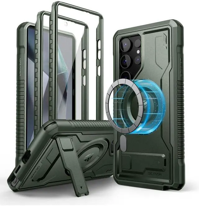Dexnor Magnetic case for Samsung Galaxy S24 Ultra Case, Compatible with Magsafe, 2 Front Frames & Built-in Screen Protector, Bumper Rugged Shockproof Full-body Protective Cover with Kickstand