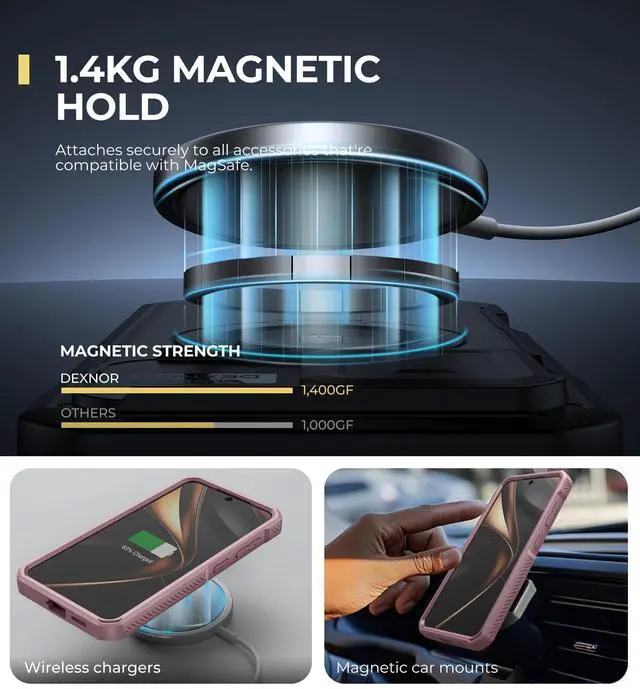 • Secure magnetic attachment: With a magnetic hold of up to 1,400g, this rugged case attaches seamlessly to all magnetic-compatible accessories. Whether it's a wireless charger or a magnetic car mount, it keeps your phone securely in place no matter the situation.