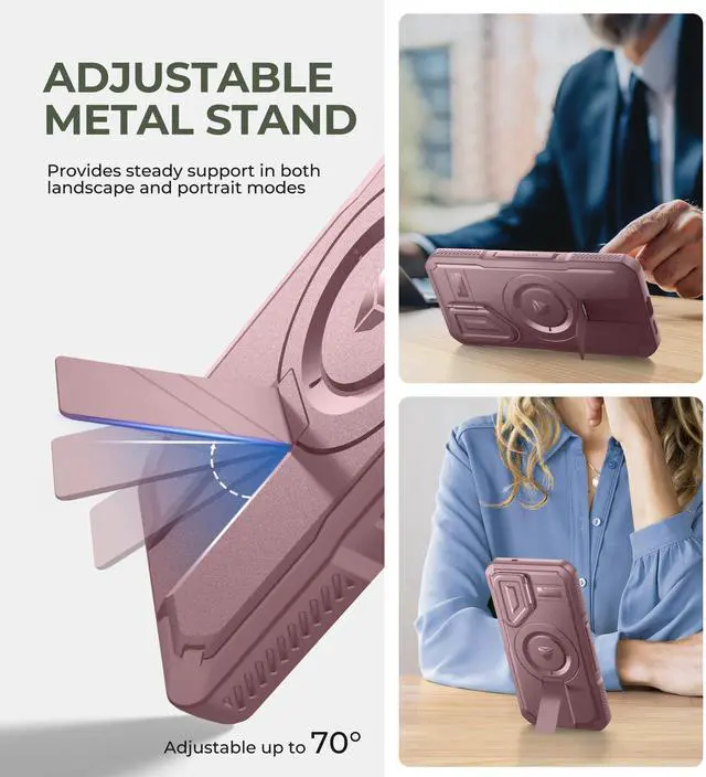 • Adjustable metal kickstand: Made from superior aluminum alloy, the adjustable stand is incredibly sturdy and long-lasting. It holds your phone securely in both landscape and portrait modes, ensuring great stability and convenience for hands-free viewing.