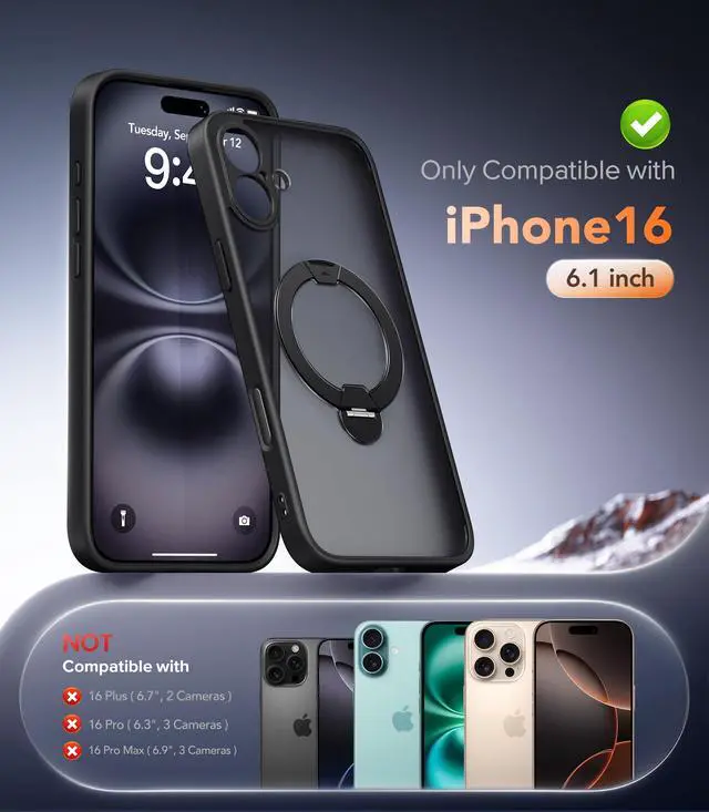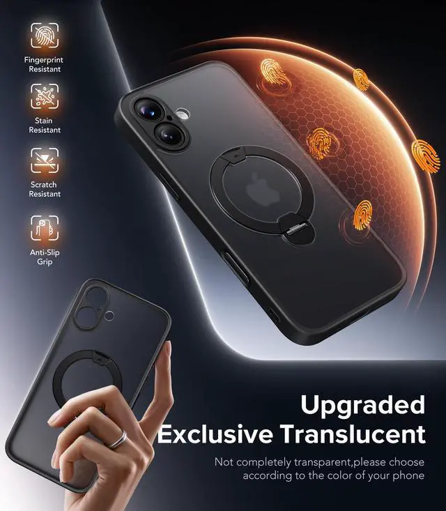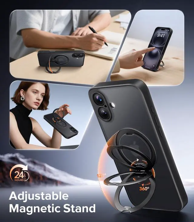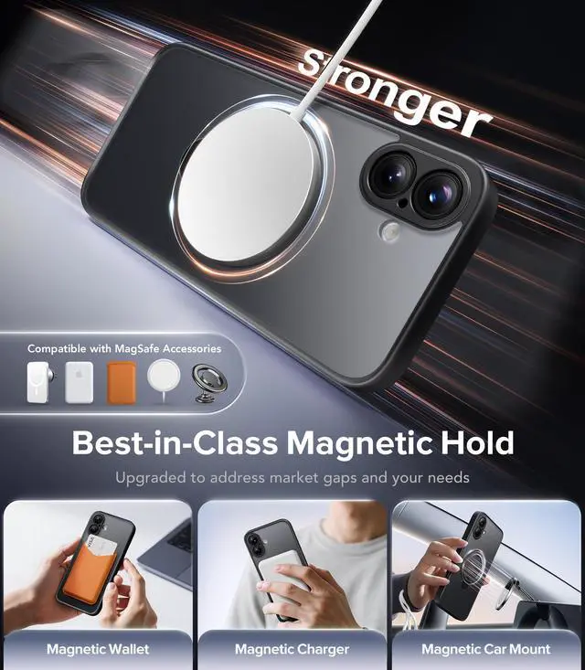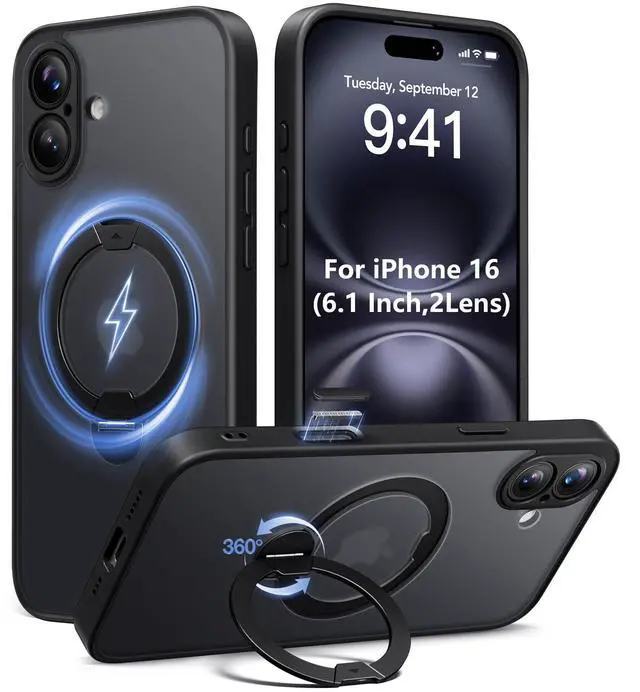 ![Alt view image 6 of 7 - Upgraded Magnetic for iPhone 16 Case,[Unbreakable & Magnetic Stand] [Military-Grade Protection] [Phone Case Compatible with MagSafe] Slim Translucent Matte Shockproof Phone Cover,Black](https://c1.neweggimages.com/productimage/nb640/C5JMD26032403KDUP34.jpg)