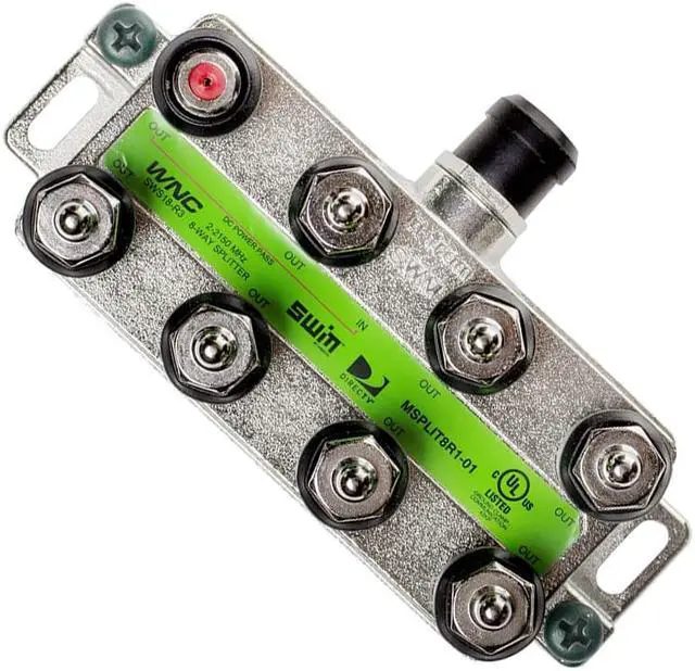 This 8-way, DIRECTV brand SWM splitter allows you to fully utilize the eight tuners worth of data in your SWM system.