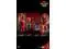 - One (1) pair of bright red and black-colored heeled boots