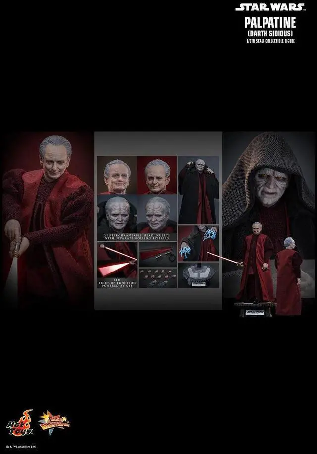 - Authentic and detailed likeness of Sheev Palpatine (Darth Sidious) as portrayed by Ian