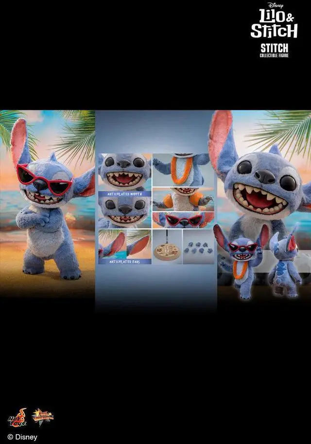 Today, Hot Toys is delighted to introduce the Stitch Collectible Figure from Disneys newest live-action adventure Lilo & Stitch! Lovingly crafted with movie-accurate detail, the Stitch collectible figure features newly developed head and soft body made from textured plush fabric in bright blue, capturing his soft and mischievous charm. His highly articulated body design, including articulated ears and mouth, allows for a wide range of expressive and dynamic poses. The figure also includes seven interchangeable paws, featuring options like roaring and sitting gestures to capture Stitchs playful personality.