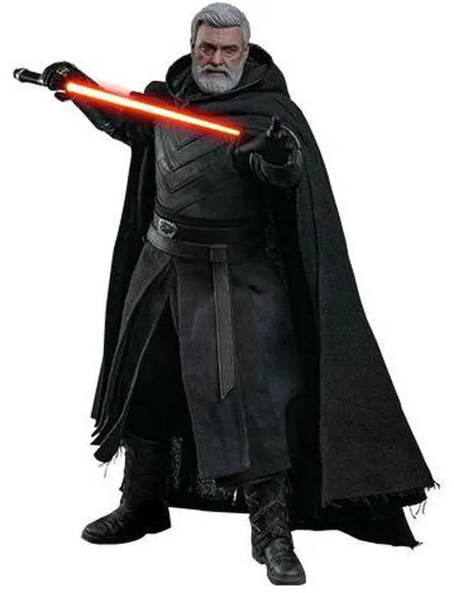The collectible figure features newly developed head sculpt with separate rolling eyeballs to adjust the eyesight, meticulously crafted outfit and cloak, form-fitting under-suit, LED light-up lightsaber, interchangeable lightsaber blades emulating the weapon in motion, and a display base.