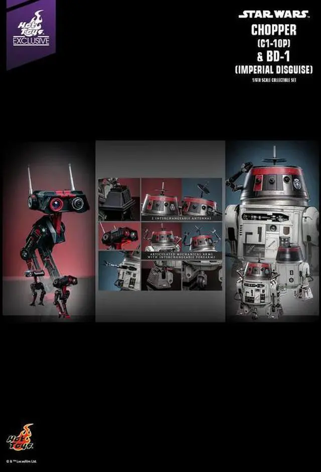 Star Wars galaxy: Chopper (C1-10P) and BD-1 (Imperial Disguise), available in a limited quantity of 2, 000 units, exclusively in selected markets. This finely crafted 1/6th scale set captures the unique qualities and intricate designs of these droids.