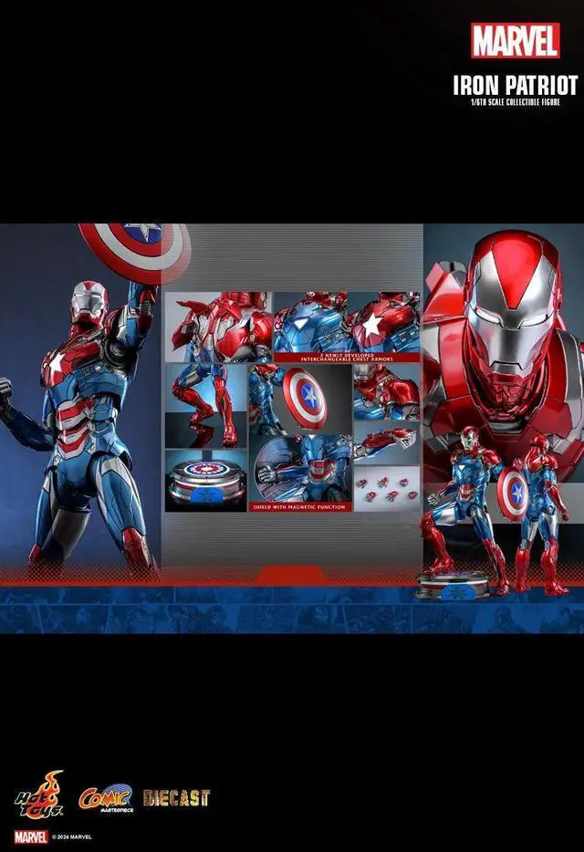 We are thrilled to present the Iron Patriot as a diecast 1/6th scale collectible figure inspired by Marvel Comics. This exclusive figure is available in a limited quantity of 3, 000 units, exclusively in selected markets.
