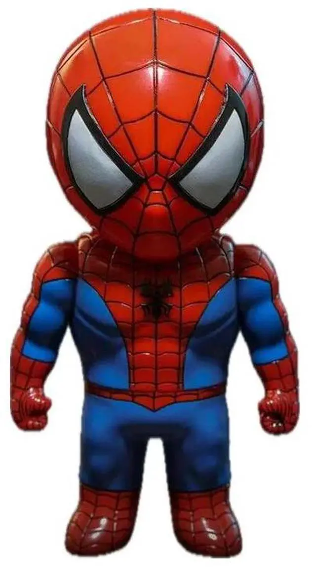 The figure includes a wearable Spider-Man mask that fits over its head, providing options for both masked and unmasked display looks. The articulated arms feature a clenched fist gesture to strike a heroic stance, perfectly embodying everyones favorite web-slinger. Its the perfect collectible for anyone who loves Spider-Man but wants something quirky and nostalgic at just one glance!