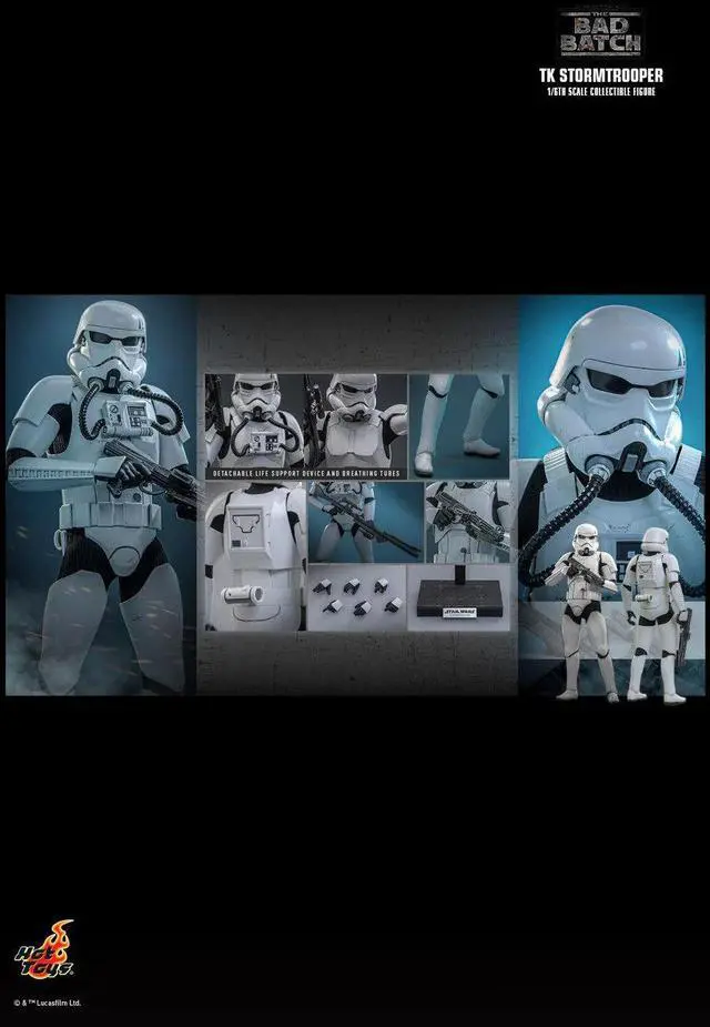 Hot Toys is excited to present the 1/6th scale TK Stormtrooper Collectible Figure. The figure features a newly crafted TK Stormtrooper helmeted head with realistic weathering effects. The costume features a newly crafted set of white and weathered TK Stormtrooper armor, a fabric undersuit, a utility belt, and a pair of boots all authentically recreated to capture the worn, early-era aesthetic seen in The Bad Batch.