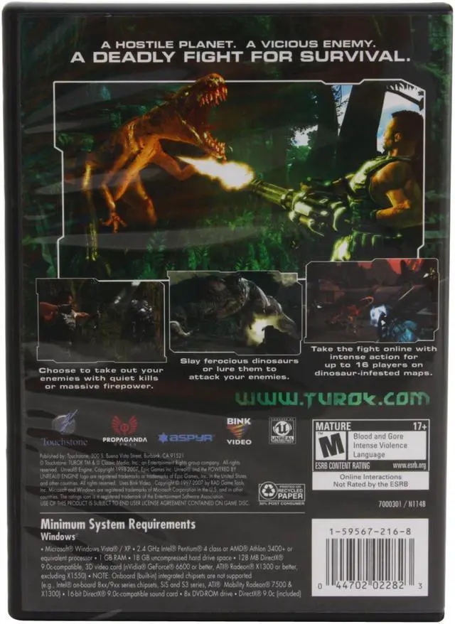 What was a military mission now becomes a mission of survival as the team members must fight opposing soldiers and natural threats – including dinosaurs – in order to stop the General from distributing his biotoxin. Using a heavily improved version of the Unreal 3 Engine, "Turok" features realistically rendered environments, enhanced A.I. and particle effects.