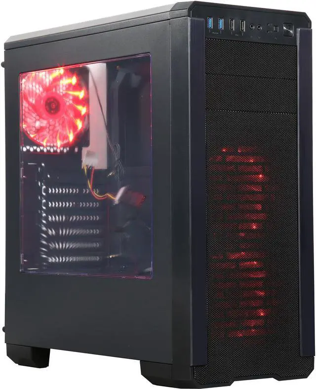 5 fans capability (2 x 120mm red 15light led fan x front, 1 x 120mm red 15light led fan x rear pre-installed) provide great cooling performance