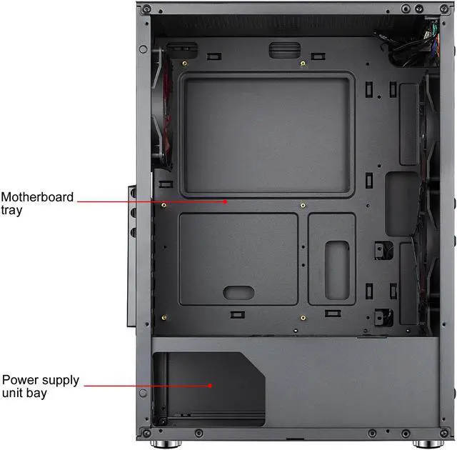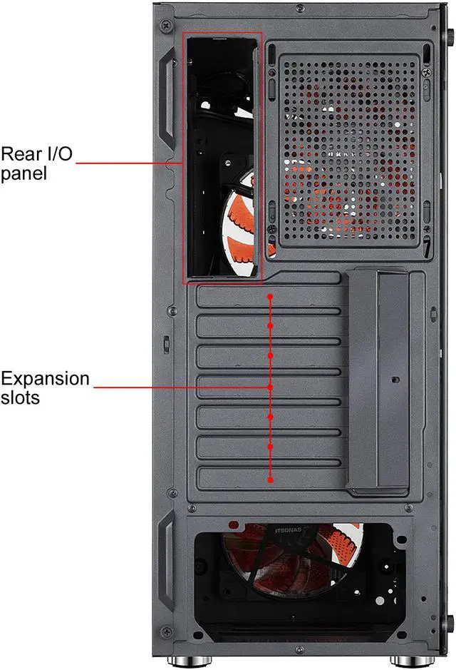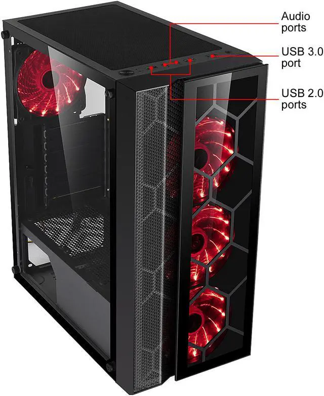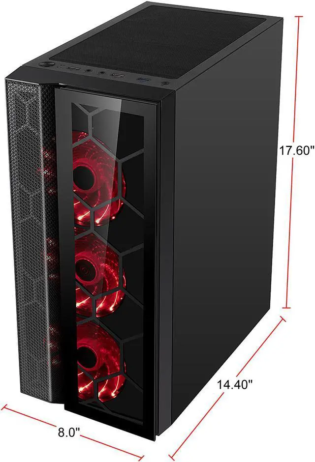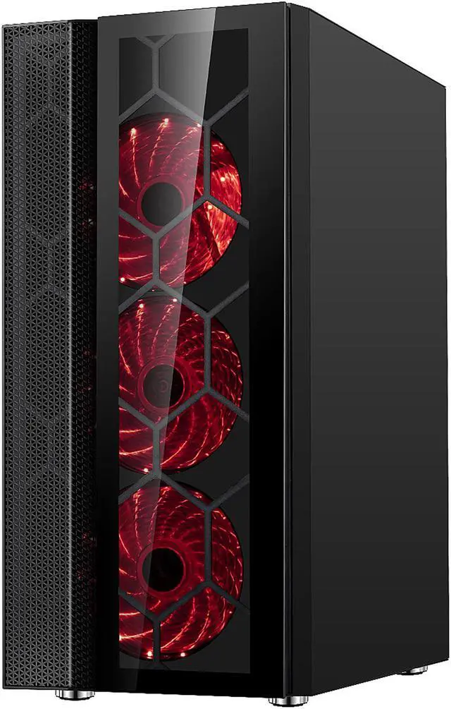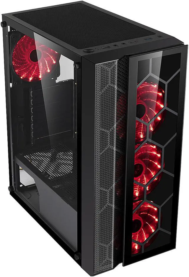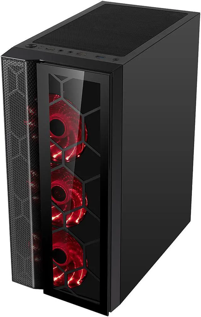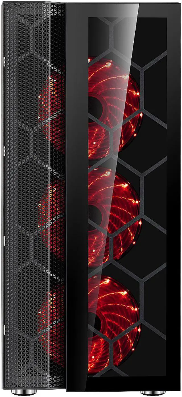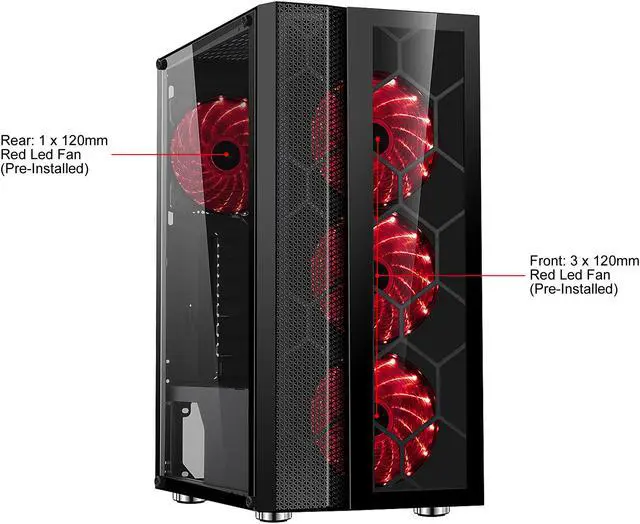 A total of four 120mm fans work with front mesh to ensure maximum cooling efficiency and feature red LEDs to create a stylish lighting environment.