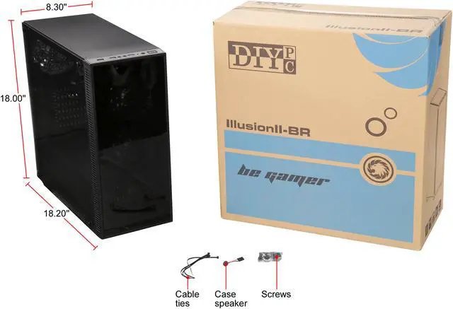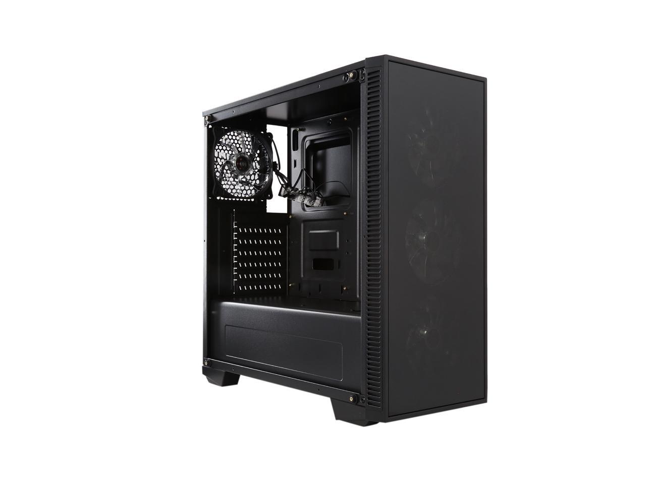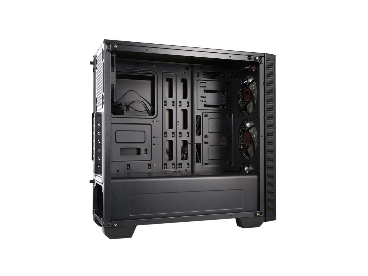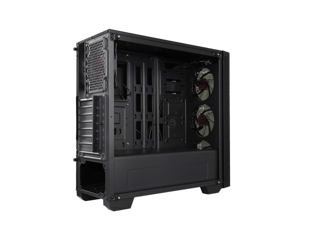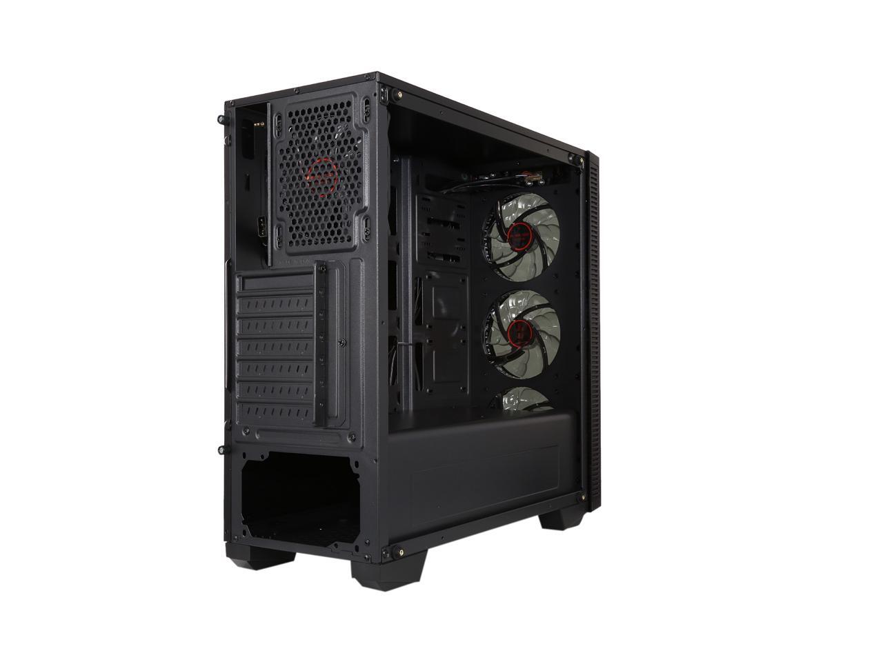 DIYPC IllusionII-BR Black Dual USB3.0 Steel / Tempered Glass ATX Mid Tower Gaming Computer Case w/4 x 120mm Red 33LED Light Fans (Pre-Installed)