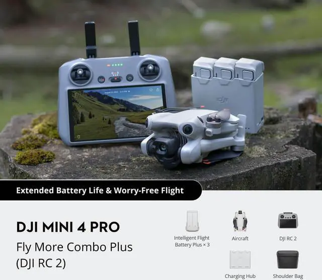 Includes RC 2, three 45 Mins Flight Time Batteries, Charging Hub, and Shoulder Bag for enhanced flight time with fast, efficient charging and convenient transportation & storage. Three long endurance batteries, allowing you to fly freely!