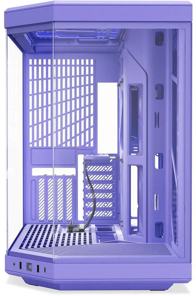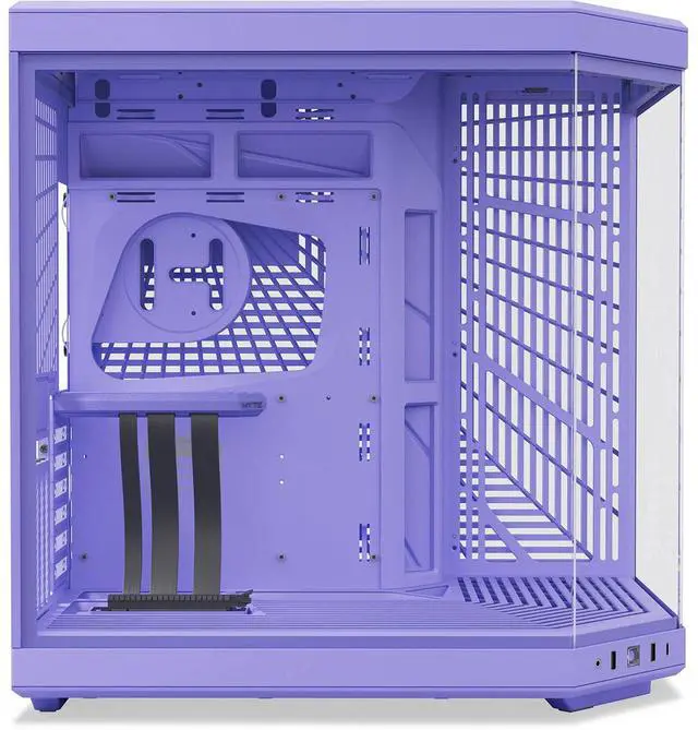 Included with the Y70 is a luxury PCIE 4.0 x 16 riser cable, color-matched to the case for a cohesive look. This riser cable simplifies GPU installation and allows for a variety of half-height PCIE cards to be positioned behind the vertical graphics setup. The Y70's unified modern aesthetic is highlighted by its beautifully crafted 3-piece panoramic glass, providing a window into the heart of your PC. The dual chamber interior layout not only enhances the visual appeal but also offers ample space for cable management. Features such as the seamless L-shaped molded rubber grommet, strategically placed cable routing channels, tie-down points, and reusable Self-Securing Closure straps ensure a clean and organized build.