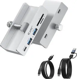 EJAY 10Gbps USB C Hub 4Ports Aluminum USB 3.2 Docking Hub Clamp Design for Desk/Computor with Extra Power Supply Port and 47inches Long Data Cable&39inches Power Cable (Sliver)