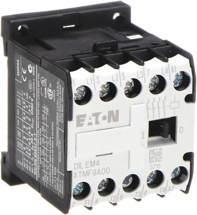 Miniature IEC Magnetic Contactor, Auxiliary Contact Form Auxiliary Contacts Not Included, NEMA Enclosure Rating No Enclosure, NEMA Size Not Applicable, Coil Voltage 110/120V AC, Number of Poles 4, Full Load Current - Inductive 9 A, Full Load Current - Resistive 20 A, Reversing Capability Non-Reversing, Overall Height 2 in, Overall Width 2.5 in, Terminal Connection Type Screw Terminals, Frame Size A, Mounting Style DIN Rail, Panel, Series XT, Number of Auxillary Contacts 0, Contactor Style IEC. This item has been restricted from sale in the following state (s): []