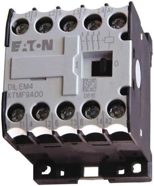 Miniature IEC Magnetic Contactor, Auxiliary Contact Form Auxiliary Contacts Not Included, NEMA Enclosure Rating No Enclosure, NEMA Size Not Applicable, Coil Voltage 220/240V AC, Number of Poles 4, Full Load Current - Inductive 9 A, Full Load Current - Resistive 20 A, Reversing Capability Non-Reversing, Overall Height 2 in, Overall Width 2.5 in, Terminal Connection Type Screw Terminals, Frame Size A, Mounting Style DIN Rail, Panel, Series XT, Number of Auxillary Contacts 0, Contactor Style IEC. This item has been restricted from sale in the following state (s): []