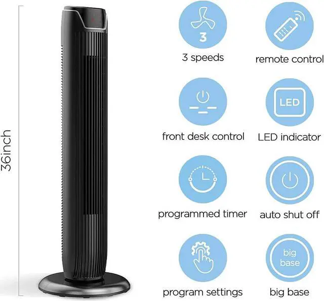 The Ecohouzng 42" Oscillating Tower fan creates a cooling breeze and oscillates to direct the breeze to every direction. Customize to enjoy incredible comfort with 3 speed settings and 3 operational modes. With a 7 hour timer, just set it, forget it, and enjoy it.