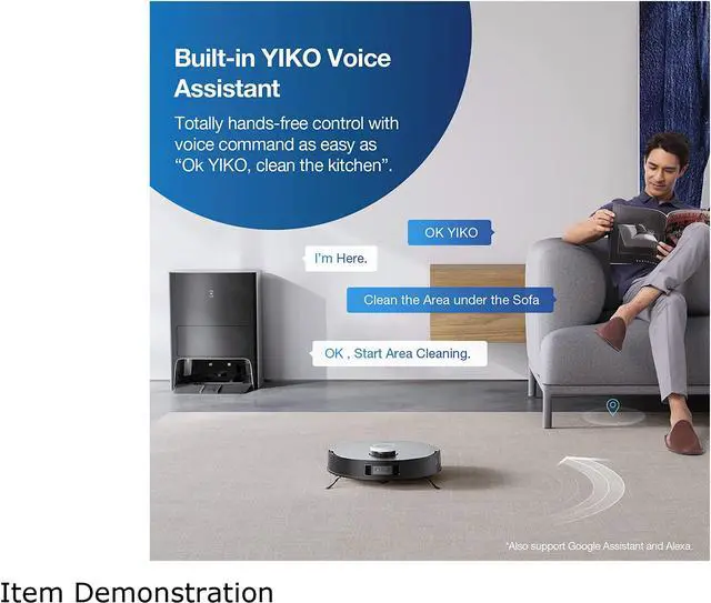| Features | All-IN-ONE OMNI STATION. A first in the industry. After vacuuming, your DEEBOT returns to station and automatically empties the dustbin. After mopping, it automatically washes the mop heads and dries them with hot air. Experience a whole new level of freedom from cleaning. 5000PA DEEP CLEANING AND ALL-NEW MOPPING. With superior 5,000PA suction power, your DEEBOT picks debris more effectively from both hard floor and carpets. The all-new OZMO Turbo rotating mopping system works doubly hard in removing stubborn stains and debris, leaving the floor clean as new. MAXIMUM COVERAGE, LESS MISSED SPOTS. With TrueMapping, the most advanced laser-based navigation system, your DEEBOT scans home environment to create the most efficient and fastest cleaning paths. Unmatched precision mapping and navigation result in methodical coverage with fewer missed spots. SAY GOODBYE TO PRE-CLEANING. Didn’t pick up your shoes? No worries. AIVI 3D Technology automatically identifies, recognizes and avoids obstacles above 2 inches in height with the utmost accuracy and precision-even in the dark. INTUITIVE VOICE CONTROL. Using your X1 OMNI will feel like second nature. The voice command system makes cleaning your house as simple as saying, "Ok YIKO, vacuum under the sofa in the living room." YIKO is a natural control system that’s even easier than the push of a button. JACOB JENSEN DESIGN. DEEBOT X1 family combines seamless functionality and timeliness beauty that looks beautiful even when it's not hard at work. WHAT YOU GET: DEEBOT X1 robot, OMNI station, 2 sets of spinning mopping pads, 2 auto-seal dust bags, 1 set of side brushes, 1 cleaning brush, multi-function cleaning tool, user manual. |