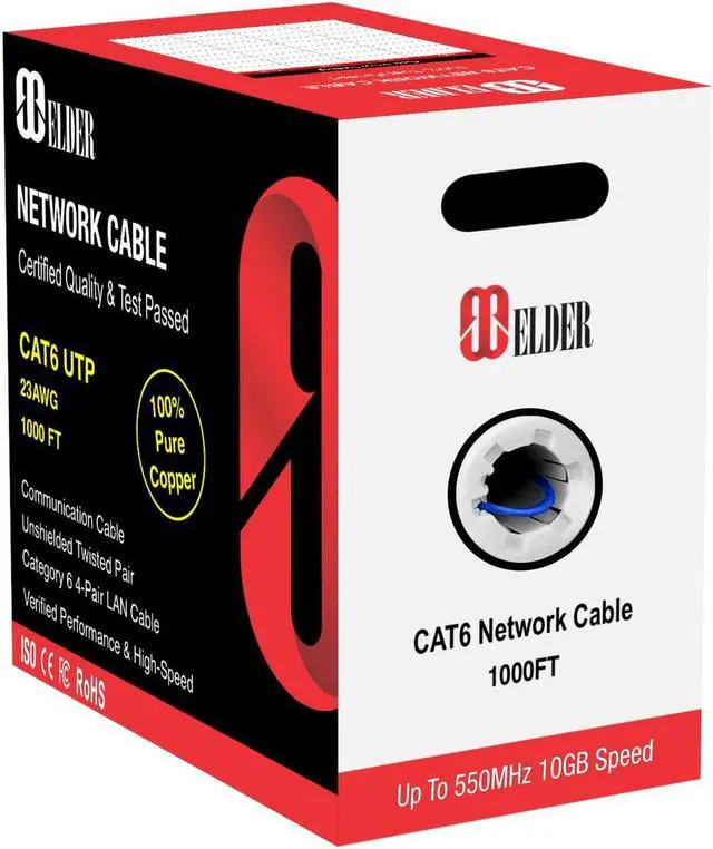 [Multi-Purposes Professional Usage] Elder Cat6 network cable bulk can be used in homes, businesses, and server rooms. It is great for high-performance networks, including high traffic networks, long-distance networks, gaming, IP security cameras, surveillance systems, NVR, PCs, laptops, network servers, routers, internet modems, PoE switches, TV boxes, printers, VoIP phones, and more professional grade purposes.