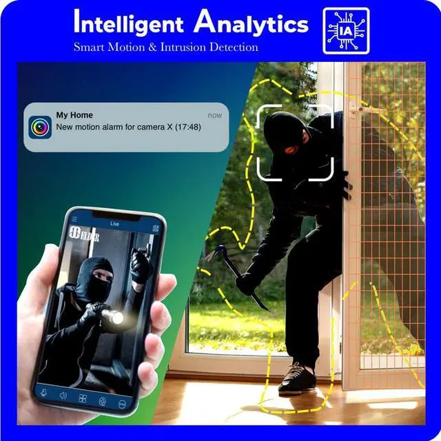 [Intelligent Detection & Smart Playback] Thanks to this innovative feature, you will get an immediate push notification to your smartphone via its smart app whenever a movement, a person, or a vehicle is detected on your home & property. So, you can act immediately to prevent unwanted activity. You also can customize the detection zone from your DVR to effectively reduce the number of unwanted false alarms. With smart area playback technology, you can select a specific area of the image to automatically search for movement within recordings.