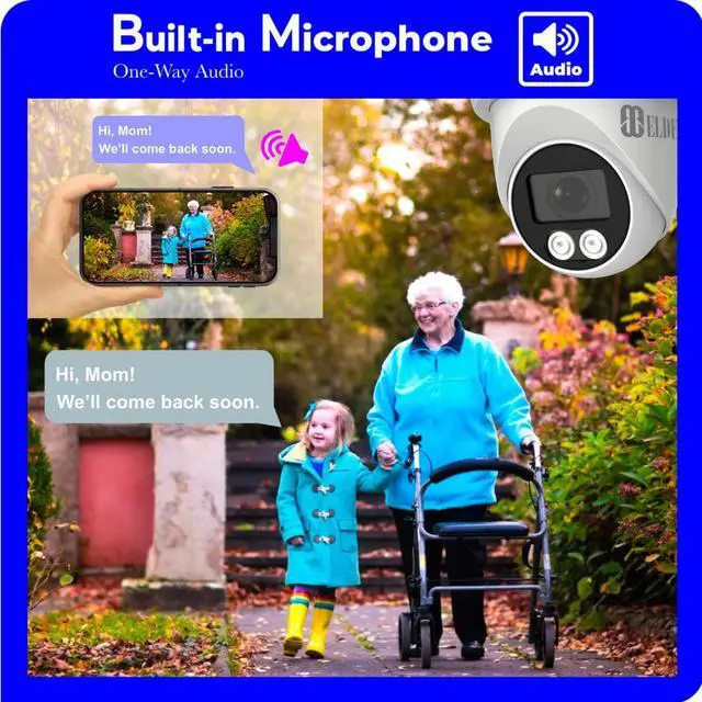 [Built-in Mic & Listen-in Audio] The Elder cameras come equipped with built-in microphones that allow for crystal-clear audio. It features Audio-over-Coax technology, which means the audio and video will be transmitted over a single coaxial cable. An audio recording would enhance the security coverage and add a significant new feature to your security system, as you will have recorded videos with clear audio and voice.