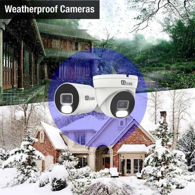[Weatherproof Heavy-Duty Housing IP66] Elder security cameras are suitable for anywhere, outdoor or indoor installation. The weatherproof rating, heavy-duty metal exterior, and weatherproof Ethernet connection add extra protection against vandalism and harsh weather, providing you truly year-round protection. Elder weatherproof cameras can withstand pretty much anything, such as snowfalls, rain, dust, heat, and wind, all year round.